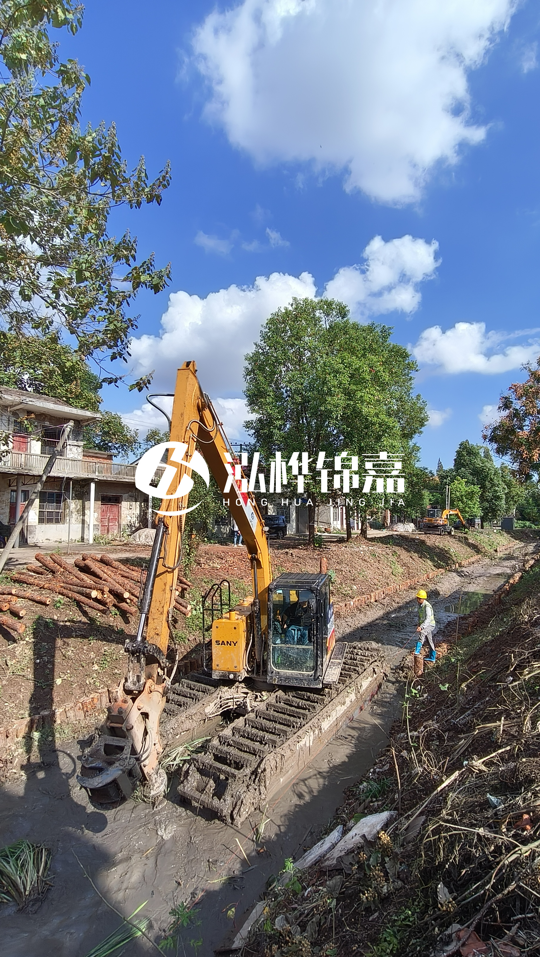 通化挖機(jī)打木樁專業(yè)施工-水挖機(jī)河道清淤如何打木樁?